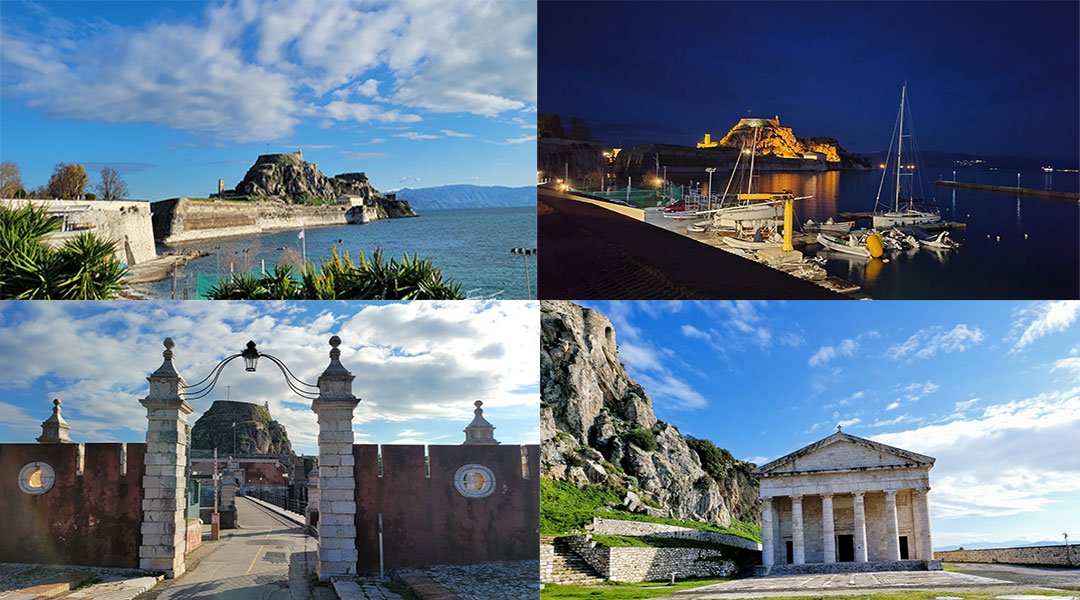 영국 통치 시대에는 베네치아적인 색체 위에 영국적인 그림을 완성했다. 영국과 프랑스의 영향은 도시 전체를 런던이나 파리의 어느 지역처럼 보이게 만들었다. 발칸 반도에서 가장 큰 광장인 스피아나다 광장(Πλατεία Σπινάδας)과 신 구 성채, 시청 등의 건물들이다.